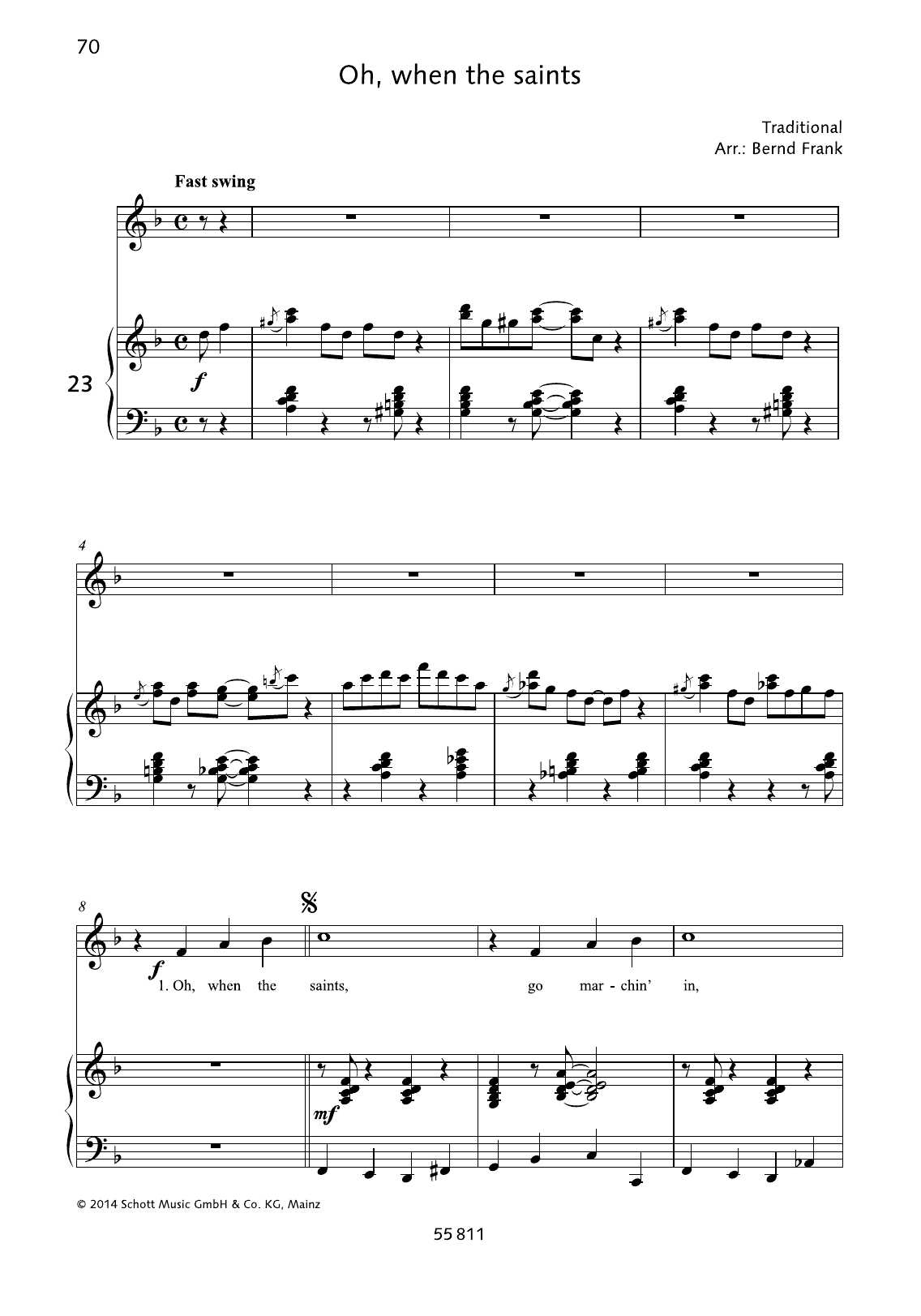 Download or print Bernd Frank Oh, when the saints sheet music, chords and digital score arranged for Piano & Vocal. This Gospel score includes 3 page(s).