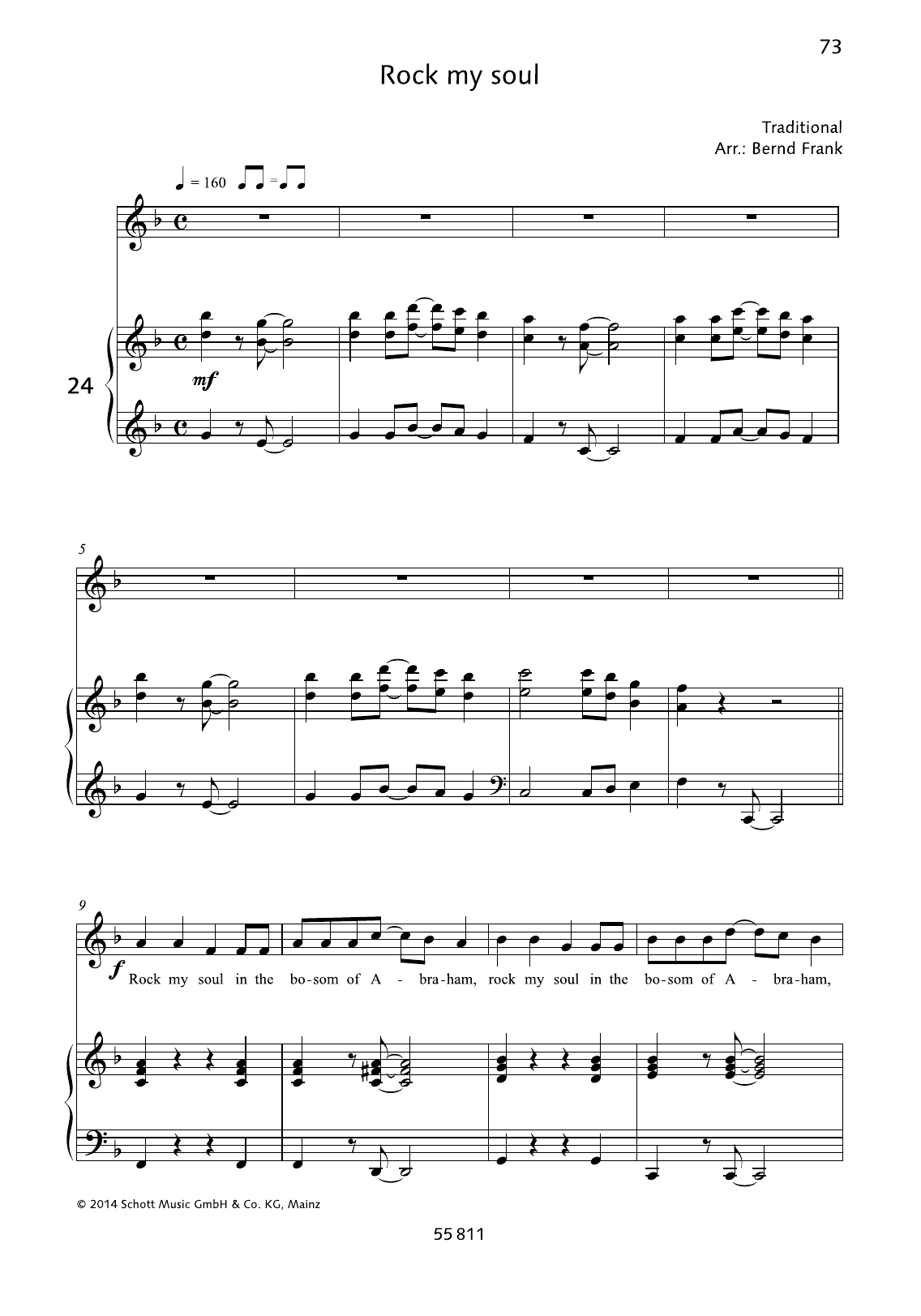 Download or print Bernd Frank Rock My Soul sheet music, chords and digital score arranged for Piano & Vocal. This Gospel score includes 5 page(s).