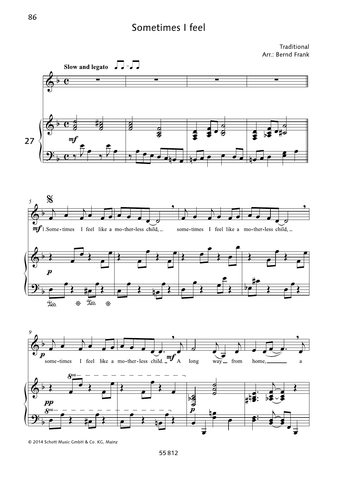 Download or print Bernd Frank Sometimes I Feel like A Motherless Child sheet music, chords and digital score arranged for Piano & Vocal. This Gospel score includes 2 page(s).