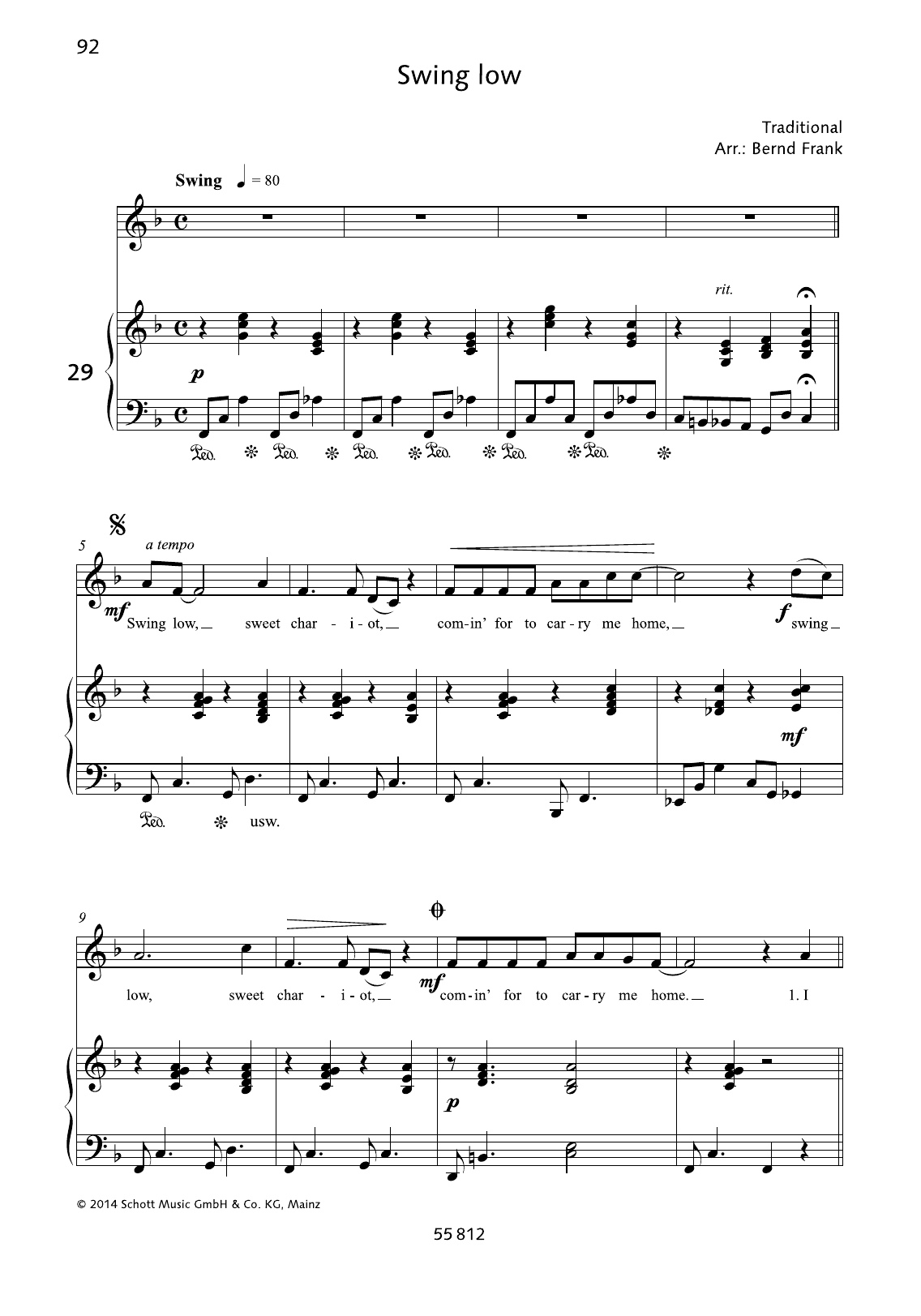 Download or print Bernd Frank Swing Low sheet music, chords and digital score arranged for Piano & Vocal. This Gospel score includes 2 page(s).