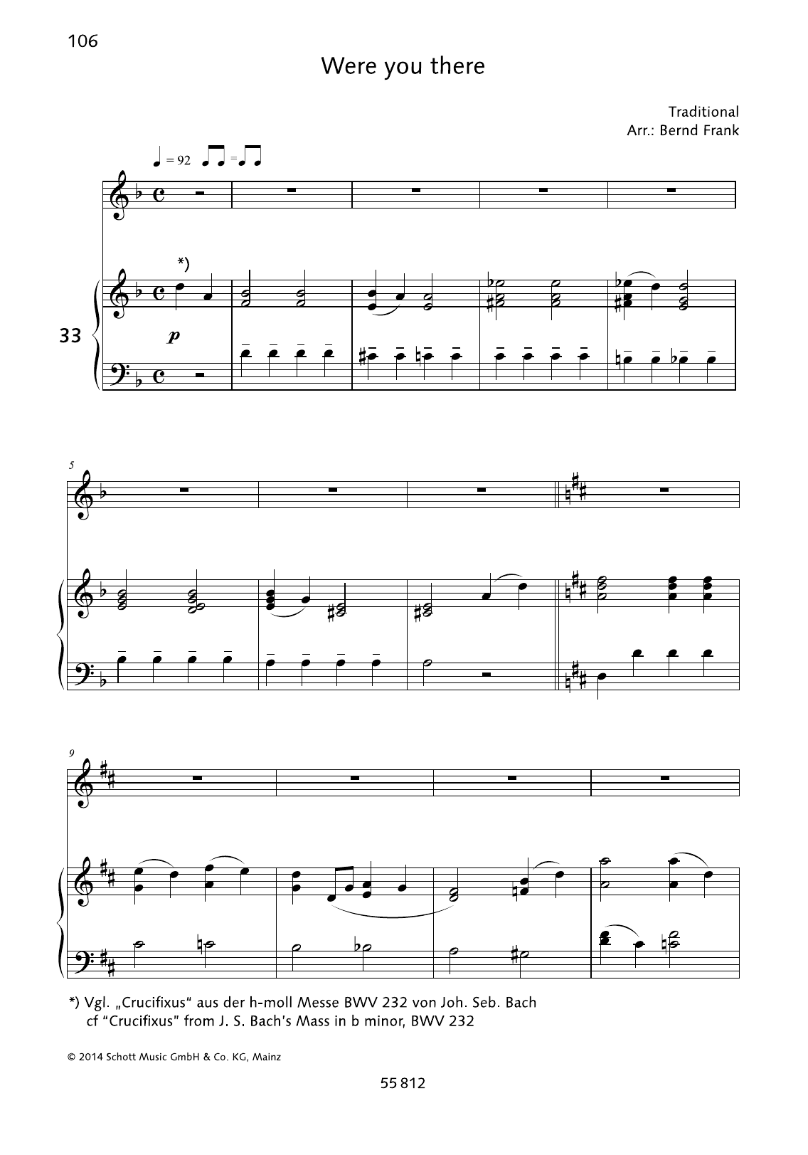 Download or print Bernd Frank Where you there sheet music, chords and digital score arranged for Piano & Vocal. This Gospel score includes 6 page(s).
