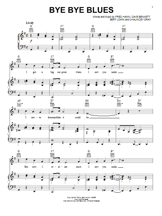 Download or print Bert Kaempfert Bye Bye Blues sheet music, chords and digital score arranged for Piano, Vocal & Guitar Chords (Right-Hand Melody). This Jazz score includes 3 page(s).