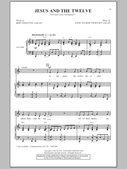 Download or print Bert Stratton Jesus And The Twelve sheet music, chords and digital score arranged for Unison Choir. This Concert score includes 6 page(s).
