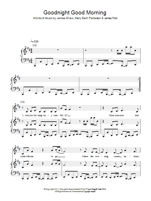 Download or print Beth Ditto Goodnight Good Morning sheet music, chords and digital score arranged for Piano, Vocal & Guitar Chords. This Pop score includes 6 page(s).