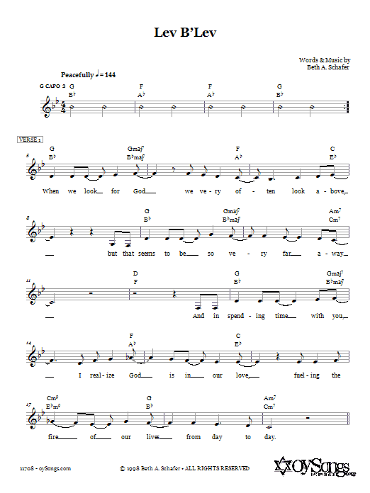 Download or print Beth Schafer Lev B'lev sheet music, chords and digital score arranged for Lead Sheet / Fake Book. This Traditional score includes 4 page(s).