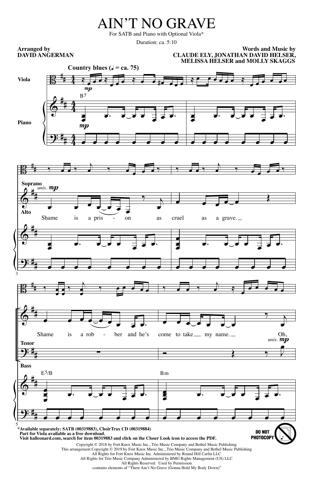 Download or print Bethel Worship Ain't No Grave (arr. David Angerman) sheet music, chords and digital score arranged for SAB Choir. This Sacred score includes 22 page(s).