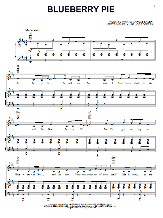 Download or print Bette Midler Blueberry Pie sheet music, chords and digital score arranged for Piano & Vocal. This Children score includes 8 page(s).