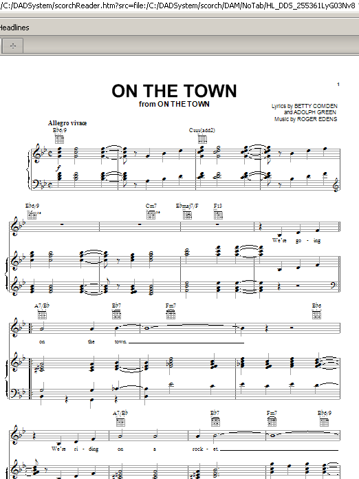 Download or print Betty Comden On The Town sheet music, chords and digital score arranged for Piano, Vocal & Guitar Chords (Right-Hand Melody). This Pop score includes 5 page(s).