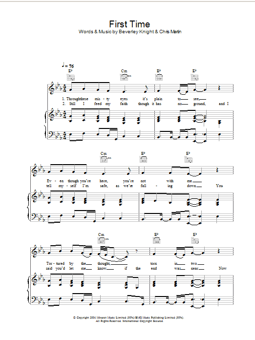 Download or print Beverley Knight First Time sheet music, chords and digital score arranged for Lead Sheet / Fake Book. This Pop score includes 4 page(s).