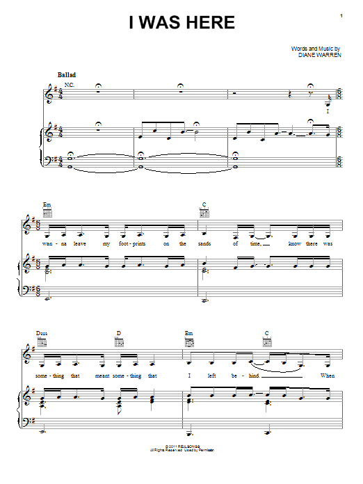 Download or print Beyonce I Was Here sheet music, chords and digital score arranged for Piano, Vocal & Guitar Chords (Right-Hand Melody). This Pop score includes 6 page(s).