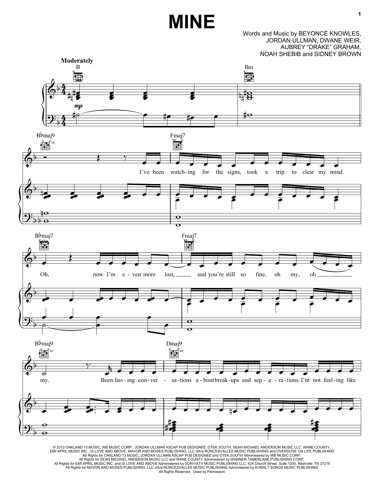 Download or print Beyoncé Mine sheet music, chords and digital score arranged for Piano, Vocal & Guitar Chords (Right-Hand Melody). This Pop score includes 14 page(s).