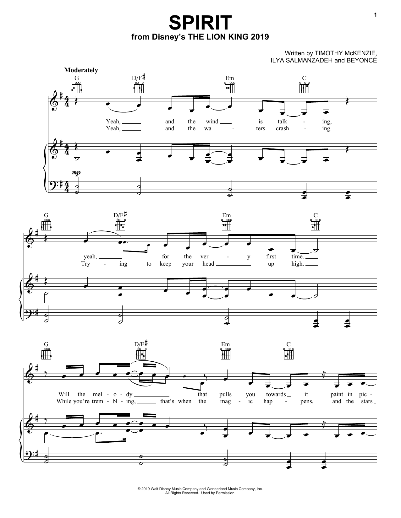 Quick facts Spirit (from The Lion King 2019) about digital sheet music