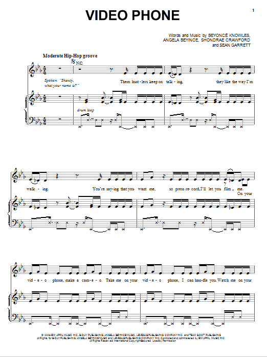 Download or print Beyonce Video Phone sheet music, chords and digital score arranged for Piano, Vocal & Guitar Chords (Right-Hand Melody). This Pop score includes 8 page(s).