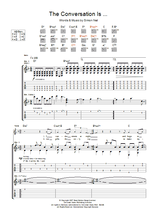 Download or print Biffy Clyro The Conversation Is... sheet music, chords and digital score arranged for Guitar Tab. This Rock score includes 7 page(s).