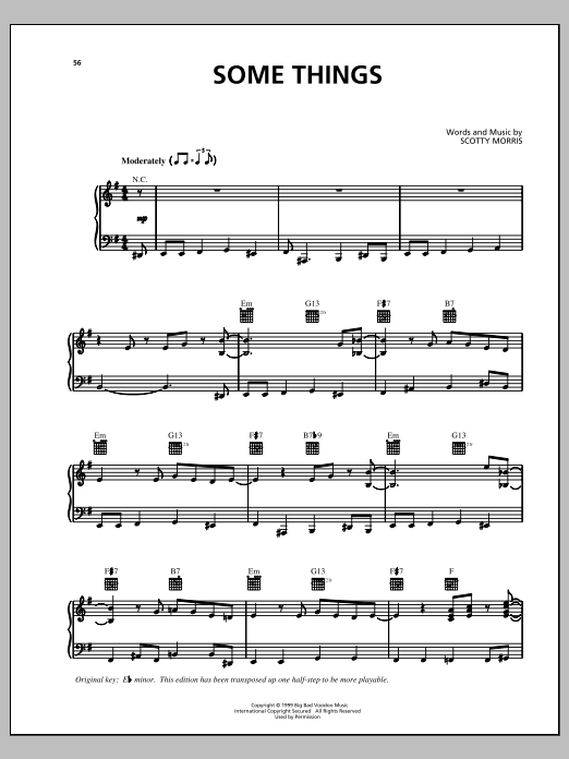 Download or print Big Bad Voodoo Daddy Some Things sheet music, chords and digital score arranged for Piano, Vocal & Guitar Chords (Right-Hand Melody). This Pop score includes 10 page(s).
