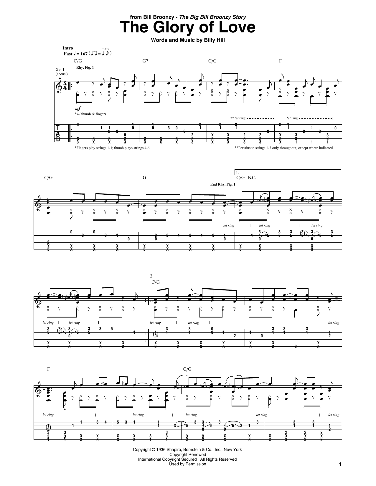 Download or print Big Bill Broonzy The Glory Of Love sheet music, chords and digital score arranged for Guitar Tab. This Jazz score includes 7 page(s).