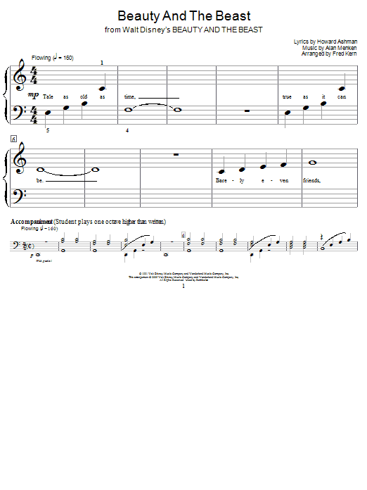 Download or print Alan Menken & Howard Ashman Beauty And The Beast (arr. Fred Kern) sheet music, chords and digital score arranged for Educational Piano. This Children score includes 4 page(s).