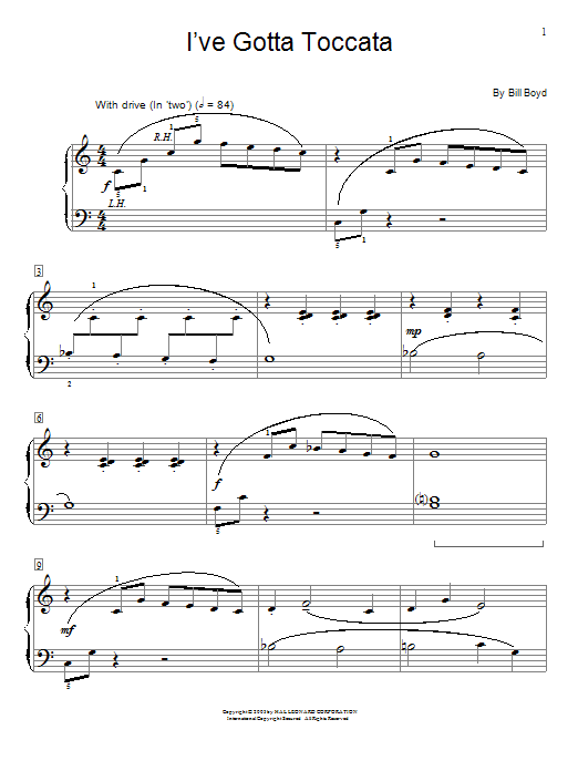 Download or print Bill Boyd I've Gotta Toccata sheet music, chords and digital score arranged for Piano Solo. This Instructional score includes 2 page(s).
