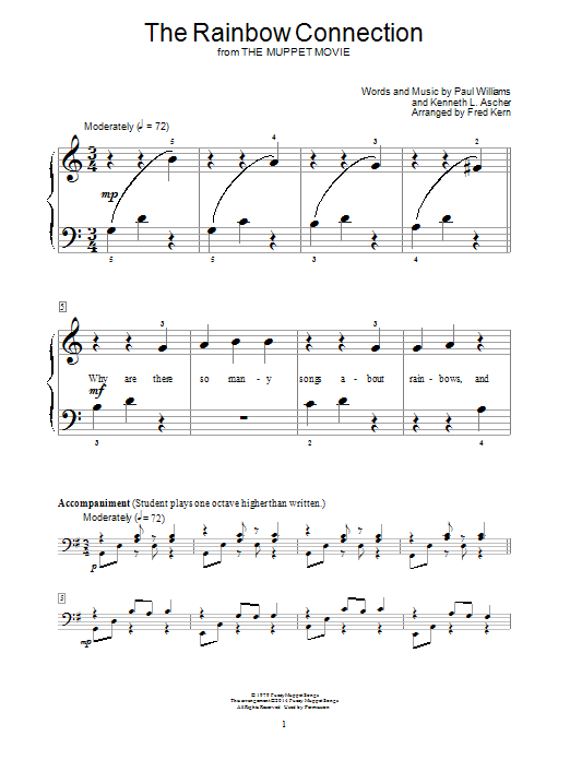 Download or print Fred Kern The Rainbow Connection sheet music, chords and digital score arranged for Educational Piano. This Pop score includes 4 page(s).