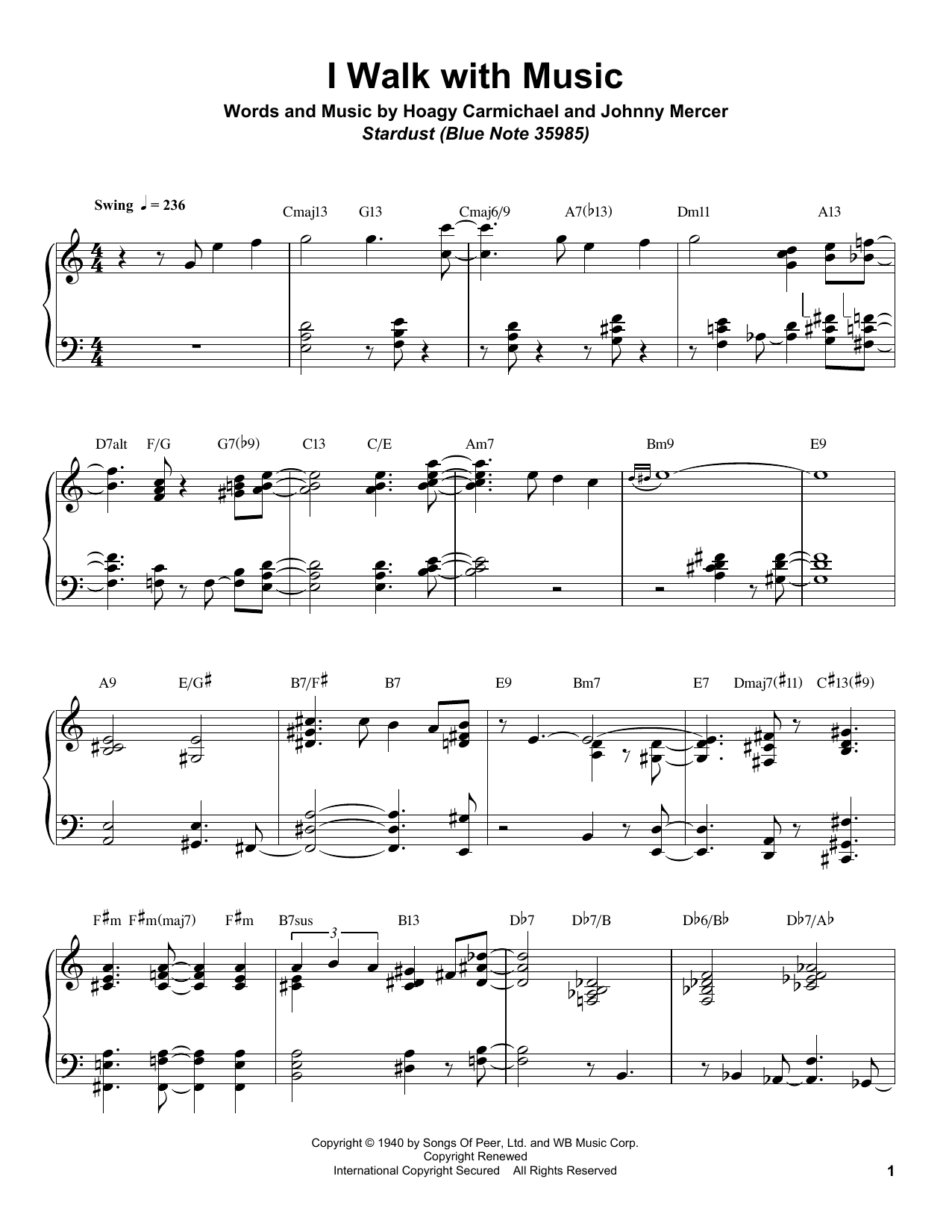 Download or print Bill Charlap I Walk With Music sheet music, chords and digital score arranged for Piano Transcription. This Jazz score includes 14 page(s).