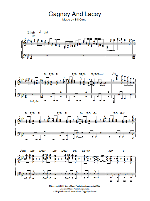 Download or print Bill Conti Theme from Cagney And Lacey sheet music, chords and digital score arranged for Piano, Vocal & Guitar Chords. This Film/TV score includes 2 page(s).