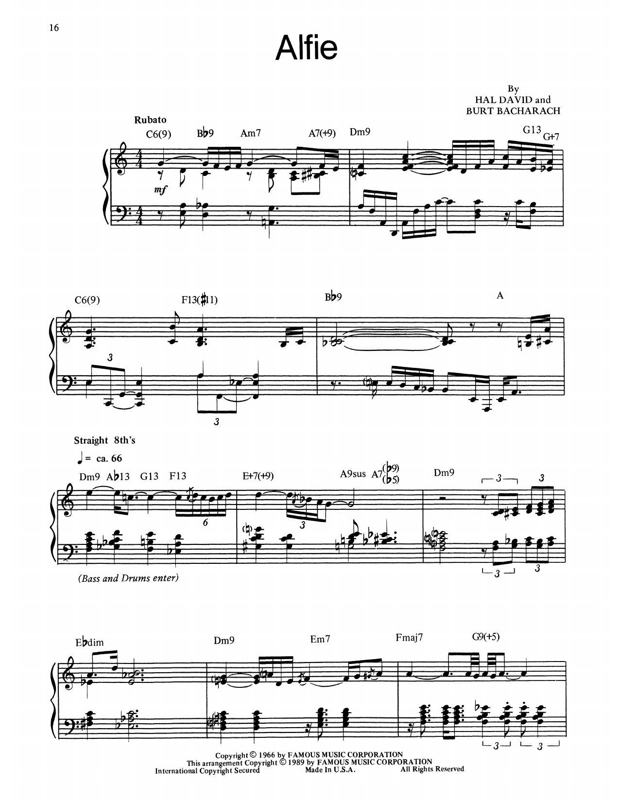 Download or print Bill Evans Alfie sheet music, chords and digital score arranged for Piano Transcription. This Jazz score includes 8 page(s).