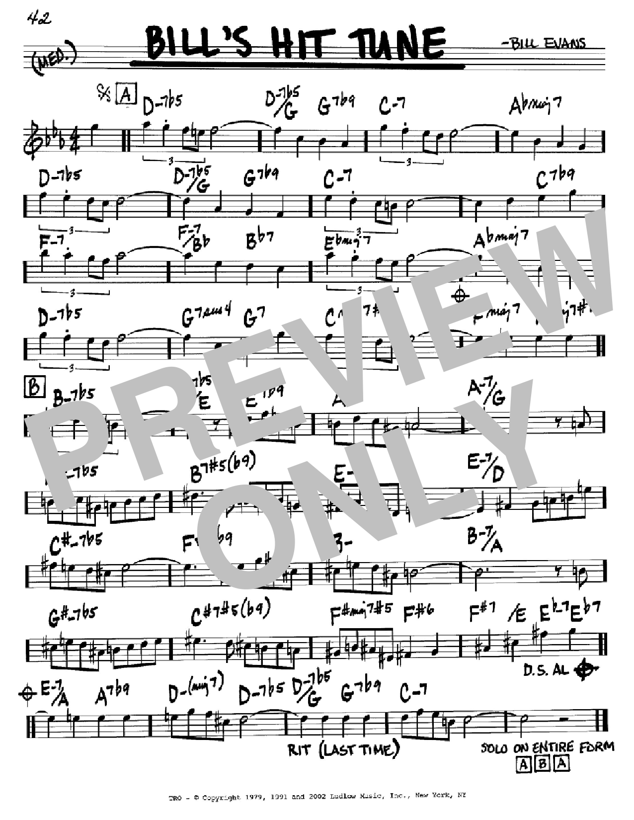 Download or print Bill Evans Bill's Hit Tune sheet music, chords and digital score arranged for Piano Solo. This Jazz score includes 11 page(s).