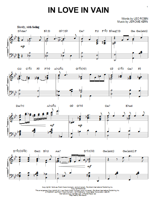 Download or print Bill Evans In Love In Vain [Jazz version] (arr. Brent Edstrom) sheet music, chords and digital score arranged for Piano Solo. This Jazz score includes 3 page(s).