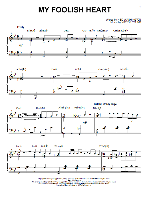 Download or print Bill Evans My Foolish Heart [Jazz version] (arr. Brent Edstrom) sheet music, chords and digital score arranged for Piano Solo. This Jazz score includes 3 page(s).