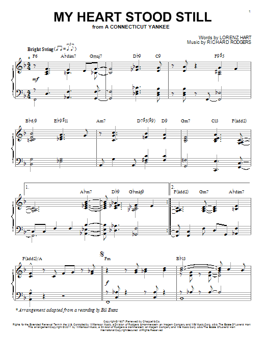 Download or print Bill Evans My Heart Stood Still [Jazz version] (arr. Brent Edstrom) sheet music, chords and digital score arranged for Piano Solo. This Jazz score includes 4 page(s).