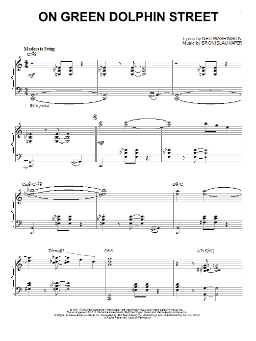 Download or print Bill Evans On Green Dolphin Street (arr. Brent Edstrom) sheet music, chords and digital score arranged for Piano Solo. This Jazz score includes 6 page(s).