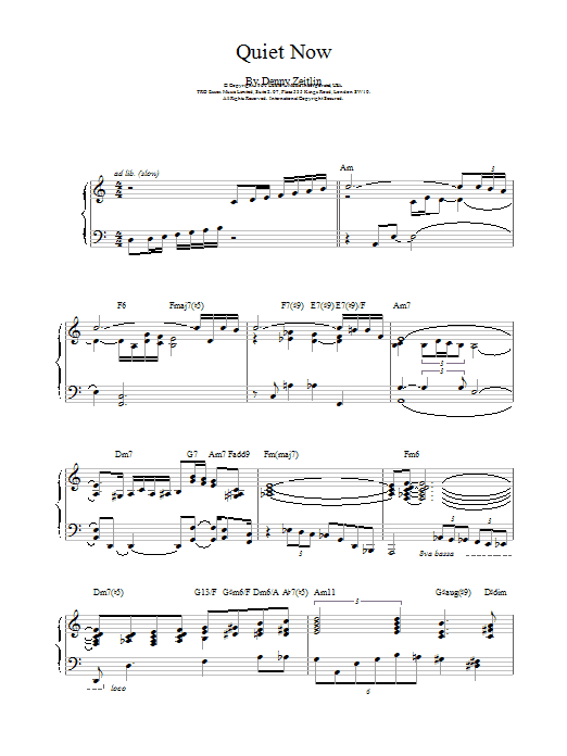 Download or print Bill Evans Quiet Now sheet music, chords and digital score arranged for Piano Solo. This Jazz score includes 4 page(s).