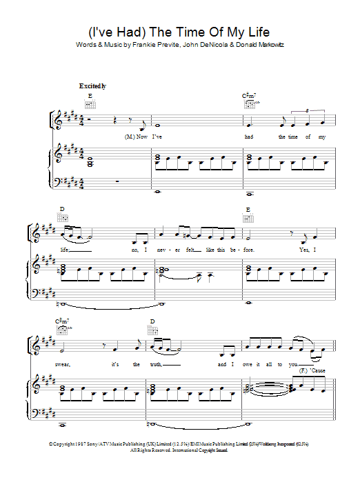 Quick facts (I've Had) The Time Of My Life about digital sheet music