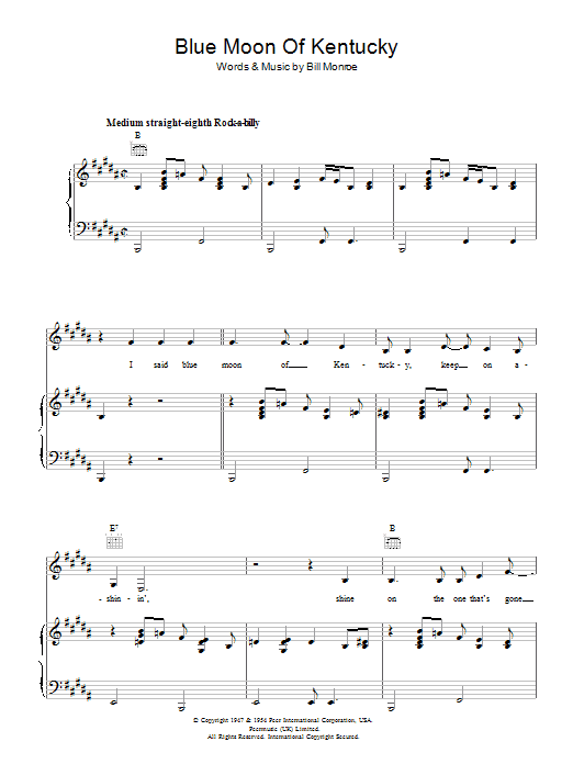 Quick facts Blue Moon Of Kentucky about digital sheet music