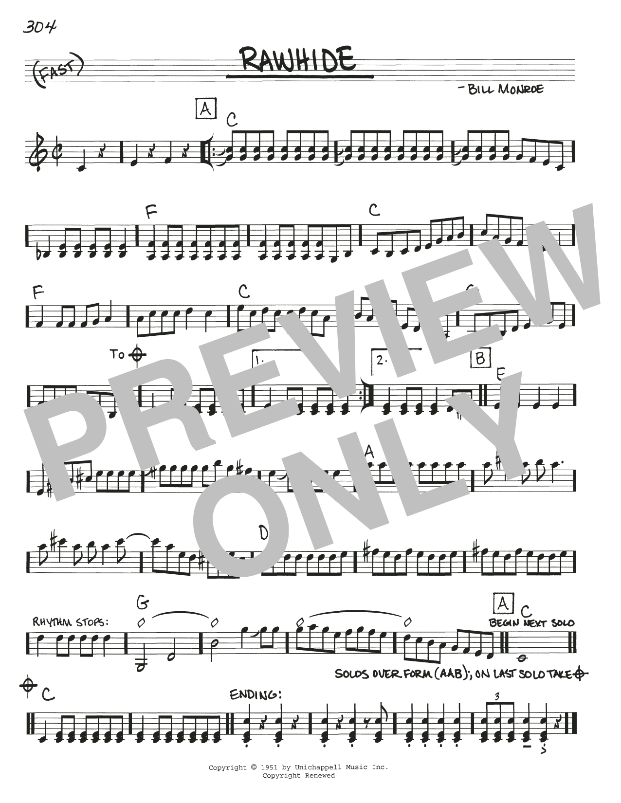 Download or print Bill Monroe Raw Hide sheet music, chords and digital score arranged for Real Book – Melody, Lyrics & Chords. This Pop score includes 1 page(s).