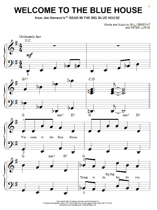 Download or print Bill Obrecht Welcome To The Blue House sheet music, chords and digital score arranged for Big Note Piano. This Children score includes 4 page(s).