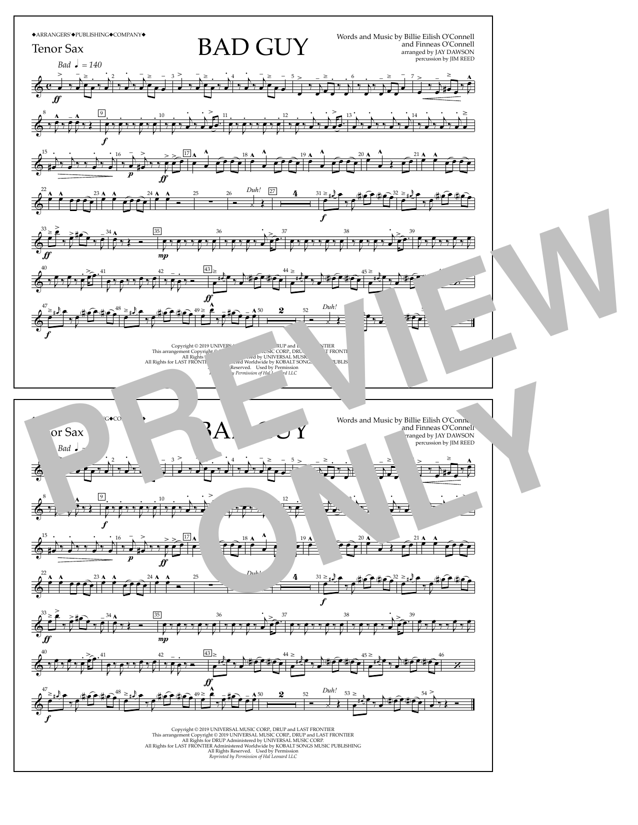 Quick facts Bad Guy (arr. Jay Dawson) - Tenor Sax about digital sheet music