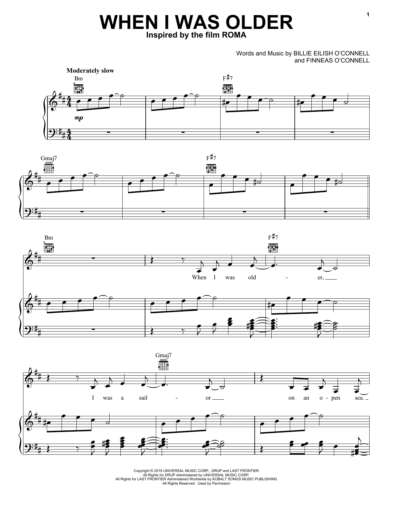 Download or print Billie Eilish WHEN I WAS OLDER (Music Inspired by Roma) sheet music, chords and digital score arranged for Piano, Vocal & Guitar Chords (Right-Hand Melody). This Pop score includes 8 page(s).
