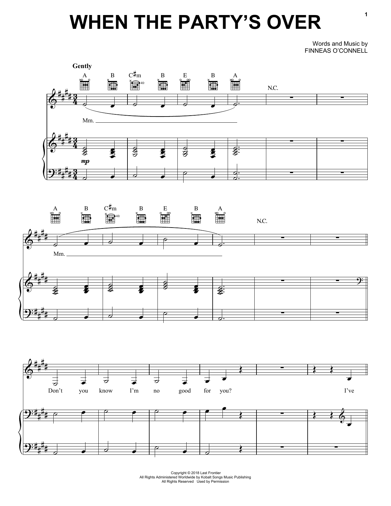 Download or print Billie Eilish when the party's over sheet music, chords and digital score arranged for Piano, Vocal & Guitar Chords (Right-Hand Melody). This Pop score includes 6 page(s).