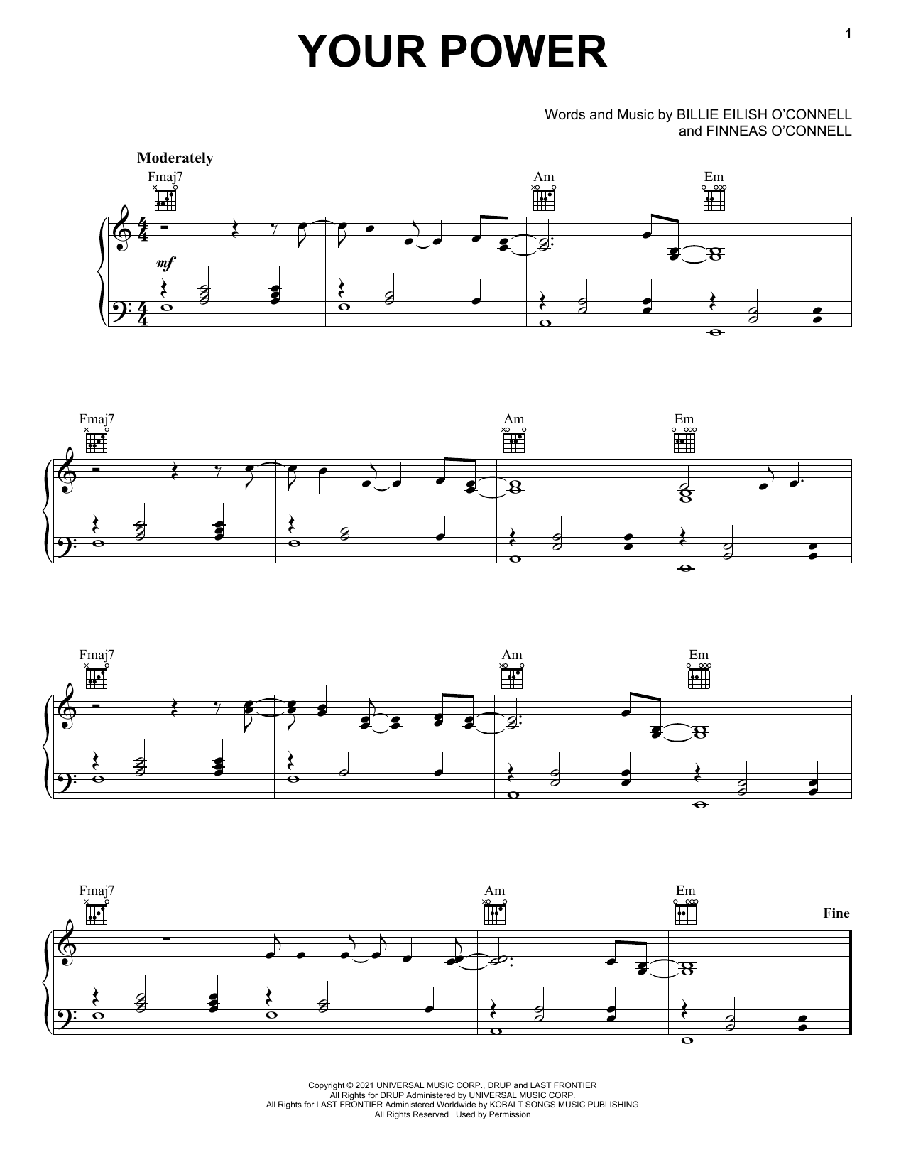 Download or print Billie Eilish Your Power sheet music, chords and digital score arranged for Guitar Chords/Lyrics. This Pop score includes 3 page(s).