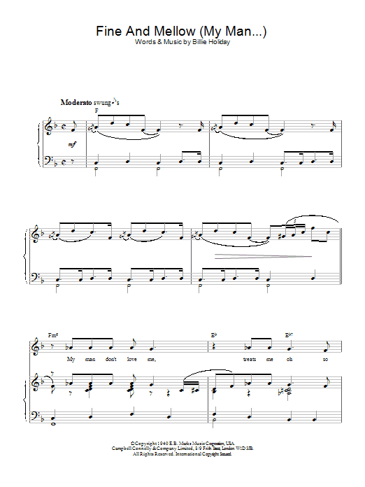 Download or print Billie Holiday Fine And Mellow (My Man...) sheet music, chords and digital score arranged for Lead Sheet / Fake Book. This Jazz score includes 3 page(s).