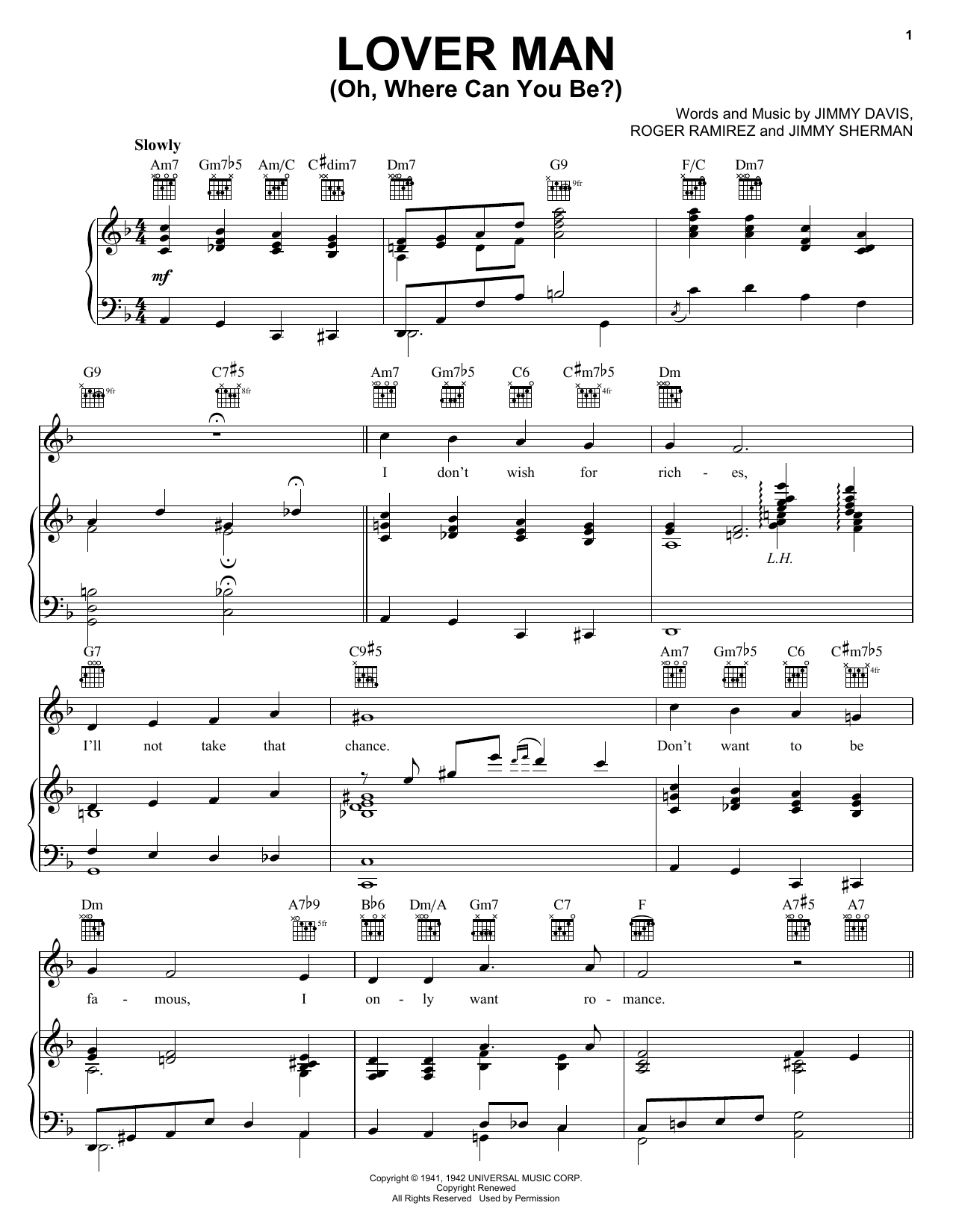 Download or print Billie Holiday Lover Man (Oh, Where Can You Be?) sheet music, chords and digital score arranged for Real Book – Melody & Chords – C Instruments. This Jazz score includes 1 page(s).