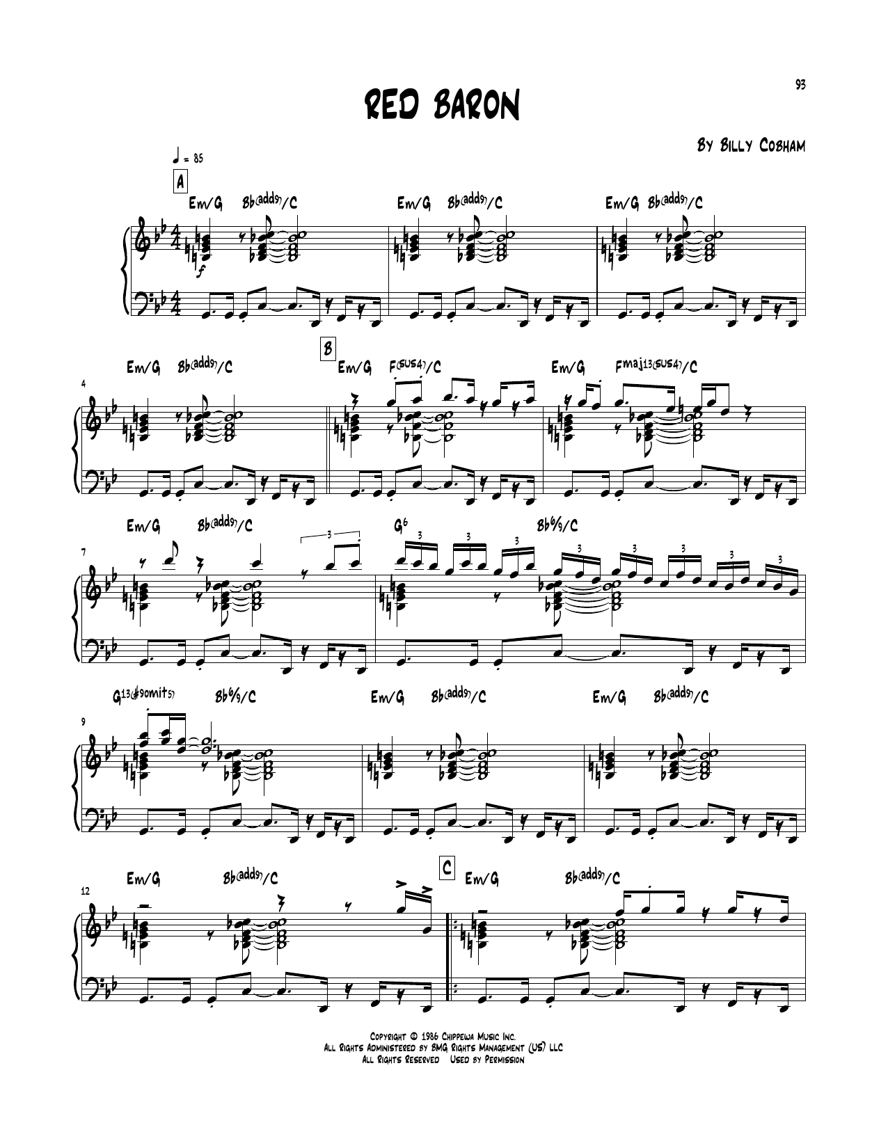 Download or print Billy Cobham Red Baron sheet music, chords and digital score arranged for Piano Solo. This Jazz score includes 4 page(s).