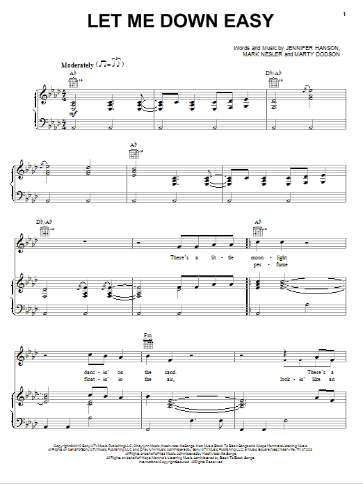 Download or print Billy Currington Let Me Down Easy sheet music, chords and digital score arranged for Piano, Vocal & Guitar Chords (Right-Hand Melody). This Country score includes 7 page(s).