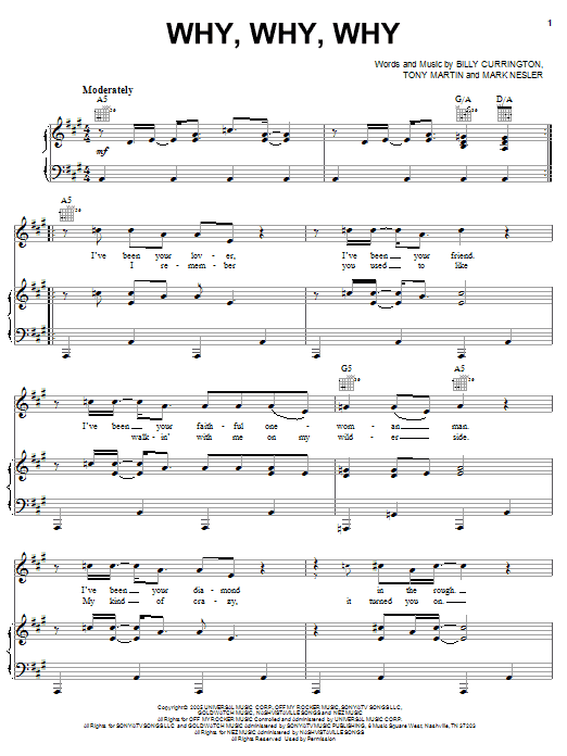Download or print Billy Currington Why, Why, Why sheet music, chords and digital score arranged for Piano, Vocal & Guitar Chords (Right-Hand Melody). This Country score includes 5 page(s).