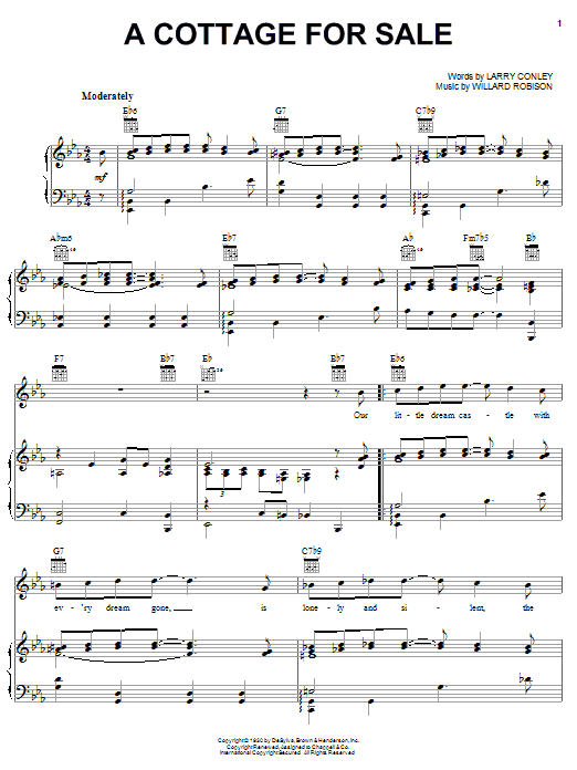 Download or print Billy Eckstine A Cottage For Sale sheet music, chords and digital score arranged for Piano, Vocal & Guitar Chords (Right-Hand Melody). This Jazz score includes 4 page(s).