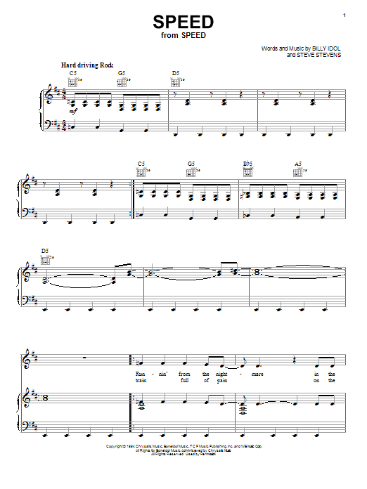 Download or print Billy Idol Speed sheet music, chords and digital score arranged for Piano, Vocal & Guitar Chords (Right-Hand Melody). This Pop score includes 10 page(s).