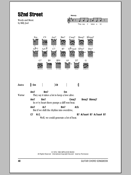 Download or print Billy Joel 52nd Street sheet music, chords and digital score arranged for Piano, Vocal & Guitar Chords (Right-Hand Melody). This Pop score includes 5 page(s).