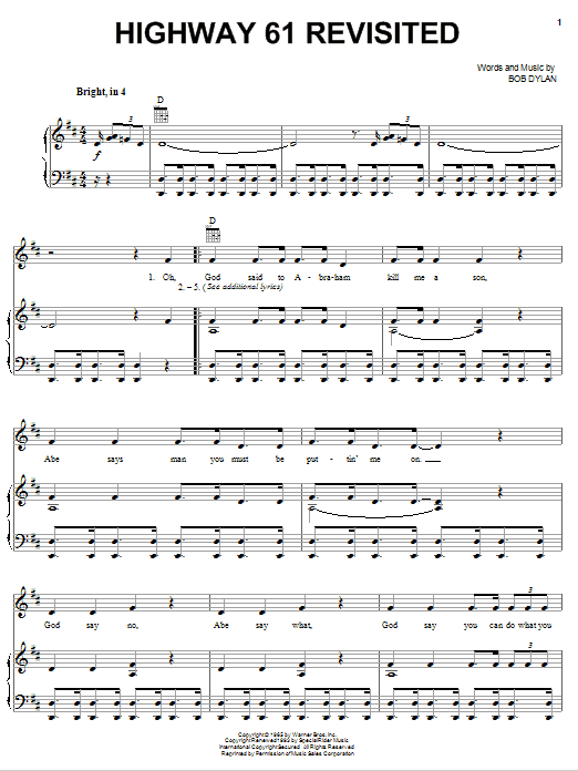 Download or print Billy Joel Highway 61 Revisited sheet music, chords and digital score arranged for Piano, Vocal & Guitar Chords (Right-Hand Melody). This Pop score includes 3 page(s).