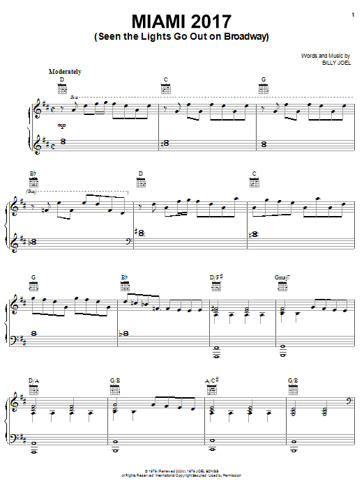 Download or print Billy Joel Miami 2017 (Seen The Lights Go Out On Broadway) sheet music, chords and digital score arranged for Keyboard Transcription. This Pop score includes 19 page(s).